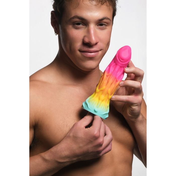Ontdek de unieke ervaring van de kleurrijke, vormveranderende chimera-dildo, een opvallend seksspeeltje dat speciaal is ontworpen om jouw plezier naar een hoger niveau te tillen. Deze dildo, vervaardigd uit hoogwaardig en flexibel siliconenmateriaal, biedt niet alleen een veilige en ftalaatvrije ervaring, maar ook een intense stimulatie dankzij de dikke en gestructureerde vorm. De schacht is versierd met touwachtige aderen die zich kronkelen en kruisen, wat zorgt voor extra sensatie tijdens het gebruik. Het monsterlijke, gerimpelde hoofd en de kleine hagedis die zich aan de regenboogkleurige schacht vasthoudt, maken dit speeltje niet alleen visueel aantrekkelijk, maar ook een bron van opwindende ontdekkingen.