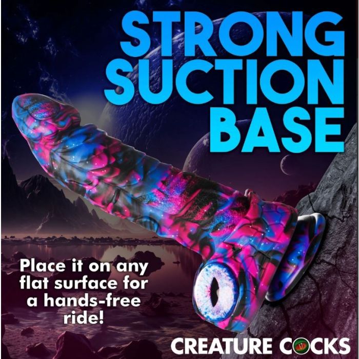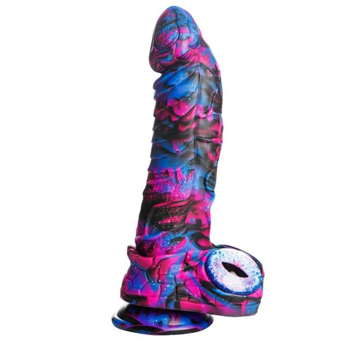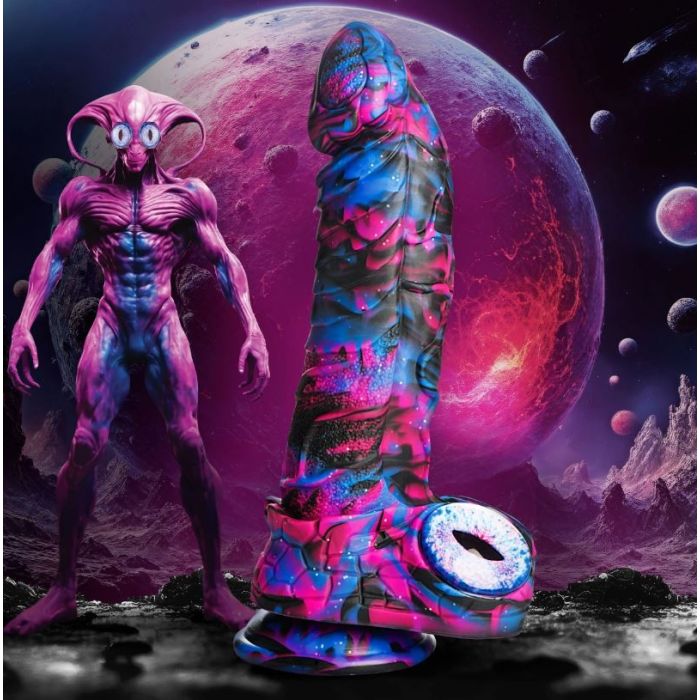 Maak je klaar om de sterren te verkennen met de unieke Kosmische Creature Cocks monster dildo! Deze Alienoid is niet alleen een lustobject, maar ook een visueel spektakel met zijn betoverende mix van rood, violet, blauw en zwart, allemaal sprankelend met glitters. De penis, strategisch geplaatst tussen de ogen van het wezen, biedt een spannende en ongebruikelijke ervaring. De textuur van de schacht, met zijn groeven en taps toelopende punt, zorgt voor een moeiteloze en plezierige inbreng, waardoor je je kunt overgeven aan een galactische reis van genot.