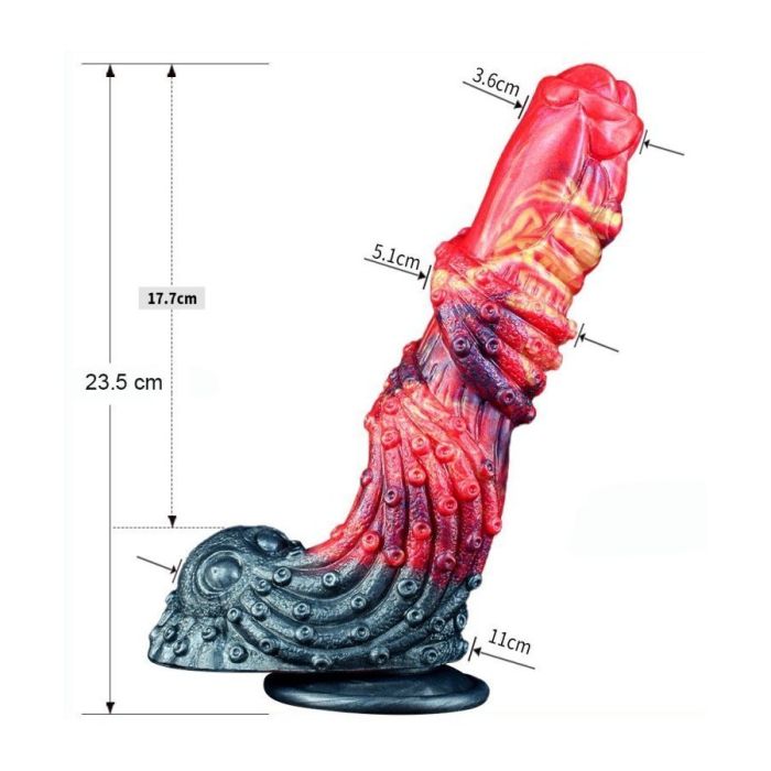 De Monster Dildo Dryz heeft een origenele vorm en een geribbeld oppervlak. Je zult intens genieten tijdens het inbrengen van de nopjes en geribbelde schacht. Dryz heeft een inbrengbare lengte 19 cm en diameter 3.7 tot 5 cm. Het siliconen materiaal voelt heerlijk zacht aan en door de zuignap te plaatsen op gladde ondergrond kun je handsfree genieten.