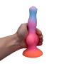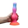 De Monstar Cox AuroraCock is een adembenemende dildo die je meeneemt op een intergalactische reis van genot. Met zijn opvallende bolvormige rondingen en vloeiende lijnen biedt deze dildo een ongeëvenaarde sensatie bij elke beweging. De schitterende gradiënt van roze, paars en oranje roept de magie op van een aurora die over de nachtelijke hemel danst, waardoor elke ervaring niet alleen fysiek, maar ook visueel een waar spektakel is. Gemaakt van hoogwaardige, lichaamsveilige siliconen, voelt de AuroraCock stevig maar zijdezacht aan, perfect voor diegenen die op zoek zijn naar gedurfde en avontuurlijke speelmogelijkheden. Met een totale lengte van 21,5 cm en een inbrengbare lengte van 19,5 cm, biedt deze dildo de ideale afmetingen voor een bevredigende ervaring. De brede, stabiele basis zorgt voor veilig, handsfree gebruik, zodat je je volledig kunt overgeven aan de kosmische aantrekkingskracht van deze unieke creatie. Verwen jezelf en laat je fantasieën de vrije loop met de Monstar Cox AuroraCock!