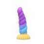 De Monstar Cox MistyCock is een spiraalvormige dildo die je zintuigen op een ongeëvenaarde manier prikkelt. Met zijn betoverende paars-blauwe gradiënt en wervelende ontwerp is deze dildo niet alleen een lust voor het oog, maar biedt hij ook een intense stimulatie die je in vervoering zal brengen. Gemaakt van hoogwaardige, lichaamsveilige siliconen, voelt de MistyCock zijdezacht aan en is hij perfect voor avontuurlijke momenten. De brede, stabiele basis zorgt ervoor dat je deze dildo veilig en handsfree kunt gebruiken, zodat je je volledig kunt overgeven aan de ervaring. Met een totale lengte van 22 cm en een inbrengbare lengte van 19 cm is deze dildo ontworpen om al je fantasieën tot leven te brengen. Vergeet niet om hem voor en na gebruik goed schoon te maken met lauw water en een milde, alcoholvrije toycleaner voor optimale hygiëne. Bereid je voor om je grenzen te verleggen en je diepste verlangens te verkennen met de Monstar Cox MistyCock!