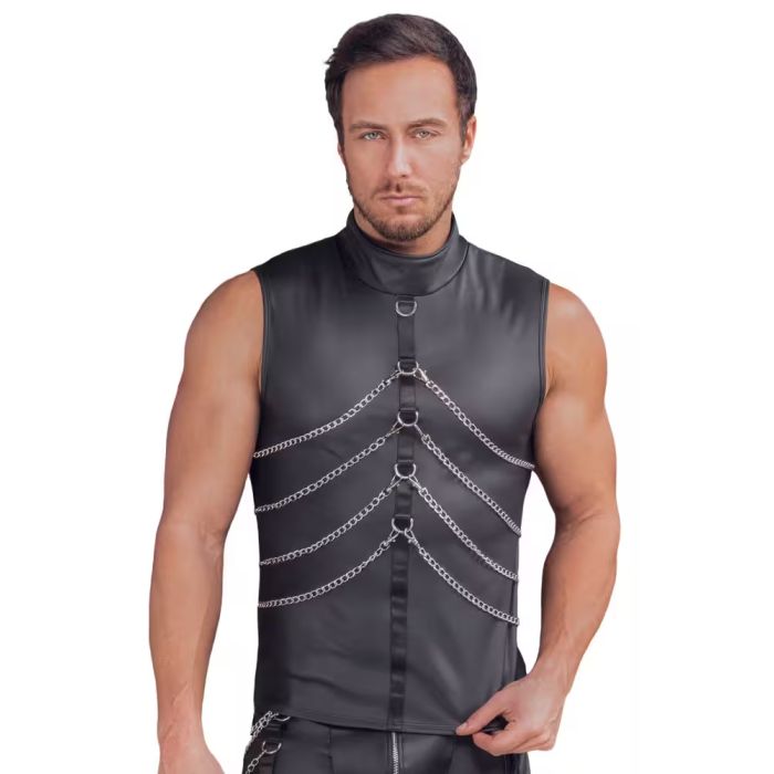 Mouwloos Shirt met Zilveren Accessoires - Zwart