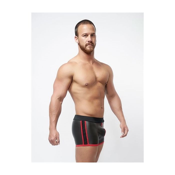 Laat je zien in deze schitterende short van mister B. De short is gemaakt van dik en rekbaar neopreen materiaal welke heerlijk rond je billen zal zitten. Tevens zal het model je billen perfect uit laten komen. Aan de zijkanten is de short versierd met mesh materiaal en de pouch is voorzien van een rits. De brede band rond de heupen is goed rekbaar en zal lekker strak rond de heupen zitten. Deze short is perfect voor in de slaapkamer of op een feestje.