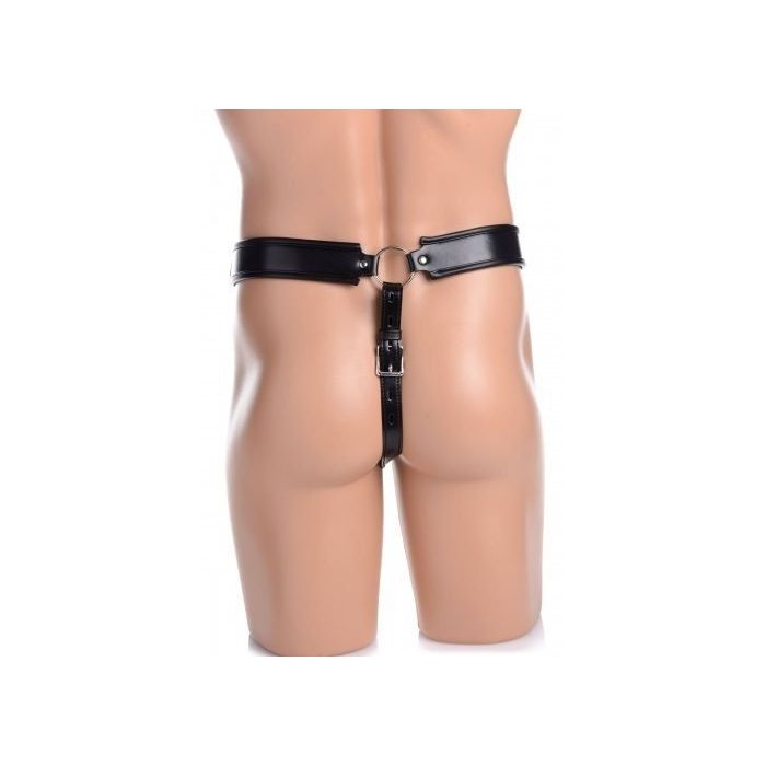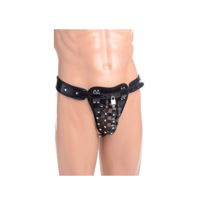 Sluit je kerel op in deze comfortabele netted male chasity jock die hem toegang tot zijn geliefde zaakje ontzegt! De jock achtige chasity heeft zelf een slotje waarvan jij de sleutel natuurlijk in beheer hebt, zodat hij gegarandeerd geen mogelijkheid heeft om te ontsnappen. Zowel de tailleband als de achterband zijn verstelbaar voor een geweldige pasvorm. Deze sexy kuisheidsgordel zorgt ervoor dat jij de touwtjes in handen hebt, zodat hij eraan herinnerd wordt dat zijn lichaam aan jou behoort! Op de achterkant is de jock voorzien van een O-ring zodat jij er bijvoorbeeld ook een riem aan kan bevestigen zodat jij je sub kan uitlaten.....- Merk: Strict