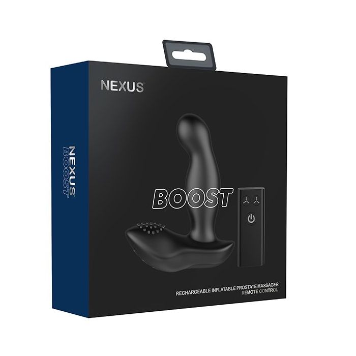 Geniet van een sensationele prostaat massage met deze luxe prostaat vibrator van Nexus. De Boost is een ergonomisch gevormde prostaat stimulator die moeiteloos de weg weet te vinden naar de prostaat. Met zijn twee krachtige motors wordt zowel de prostaat als het perineum verwent met 6 zinderende vibratiestanden. Tevens is de Boost voorzien van een opblaasbare tip om de prostaat nóg intenser te masseren. Het apparaat is uitgerust met een ingebouwde accu die je eenvoudig oplaadt via de meegeleverde USB-oplaadkabel. Na 2 uur opladen is de Nexus Boost tot wel 2.5 te gebruiken. Bedien het speeltje met de draadloze afstandsbediening die een bereik heeft van maximaal 8 meter. Schoonmaken kan met water en een milde zeep of met een speciale toycleaner uit ons assortiment. Let op: uitsluitend te gebruiken met een glijmiddel op waterbasis.