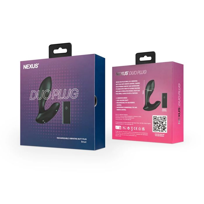 De Nexus Duo is een heerlijke vibrerende buttplug die 6 heerlijke vibratiestanden levert. De buttplug is gemaakt van hoogwaardig en flexibel siliconen dat zijdezacht aanvoelt op de huid. Via de draadloze afstandsbediening kan je tot een afstand van 8 meter de buttplug bedienen. Zowel de buttplug als de afstandsbediening zijn eenvoudig op te laden via de meegeleverde magnetische USB-oplaadkabel. De Nexus Duo is waterproof (IPX7) wat het mogelijk maakt om hem tot 1 meter onder te dompelen in water tot 30 minuten. Gebruik uitsluitend een glijmiddel op waterbasis in combinatie met dit speeltje. Schoonmaken kan met water en een milde zeep of met één van onze speciale toycleaners.