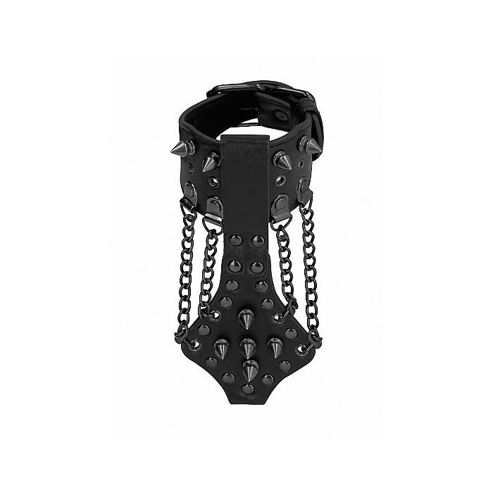 Skulls & Bones, zo heet de nieuwste (BD)SM-collectie van Ouch! Deze collectie is ontworpen met een briljant oog voor brute details. Zo zijn alle artikelen voorzien van veel spikes en/ of skulls. De hele lijn is gemaakt van prachtig zwart kunstleer van hoogwaardige kwaliteit. Met deze prachtige handboei om creëer je in een handomdraai en kinky look. hij is helemaal bedekt met spikes en versierd met kettingen aan de zijkant. De flap die je handrug bedekt heeft aan het uiteinde een ring die je om je middelvinger doet zodat de boei goed blijft zitten. Aan de onderkant van de pols zit een handige gespsluiting die stevig blijft zitten. De handboei is snel om te doen en op makkelijk op maat te brengen. Ook verkrijgbaar in een set van 2 handboeien!- Merk Ouch! Skulls & Bones