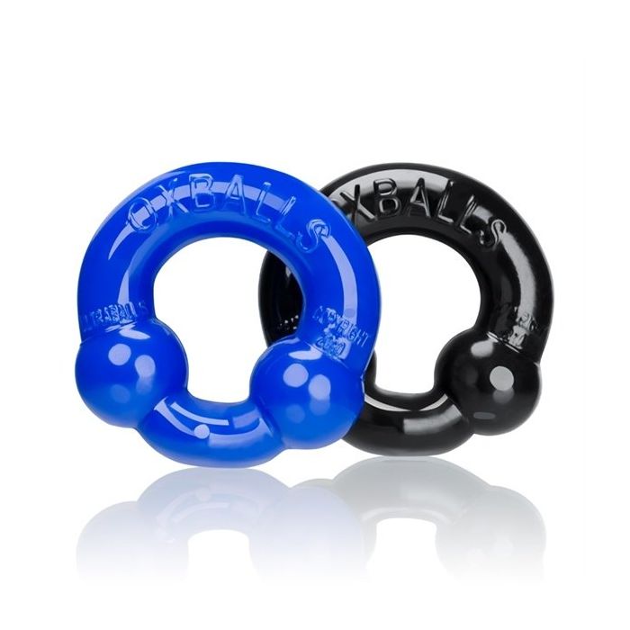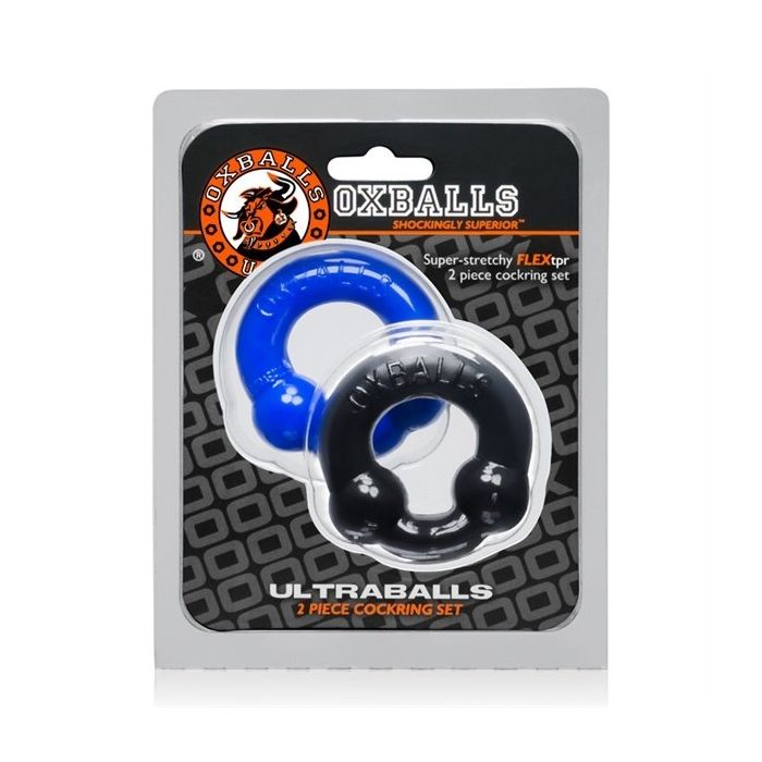 Ultraballs 2-Pack Cockring Zwart/Blauw & Rood/Zilver-Blauw
