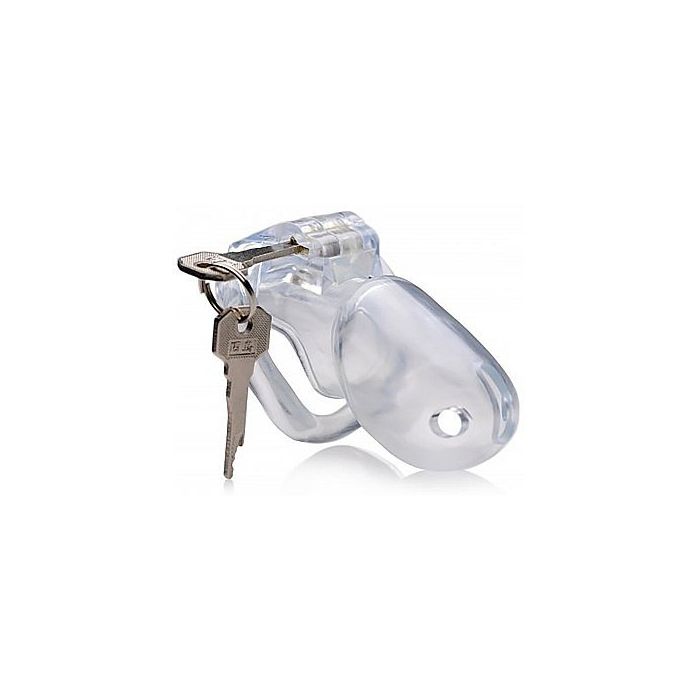 Sluit je sub op in deze Peniskooi Clear Captor - Small van Master Series. De peniskooi is gemaakt van vergevingsgezinde materialen voor langdurig comfort, evenals een royale hoeveelheid ventilatiegaten en een plasopening. De Clear Captor bevat 4 balringen van aflopende grootte voor alle soorten balzakken. Het ABS materiaal blijft stijf en stevig voor een gevoel van veiligheid en vertrouwen voor de drager. Het veilige vergrendelingsmechanisme beveiligt deze kooi zonder vervelende sloten die in de weg zitten! De Clear Captor bevat twee sleutels, een voor jou en een voor je sub in geval van nood.