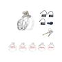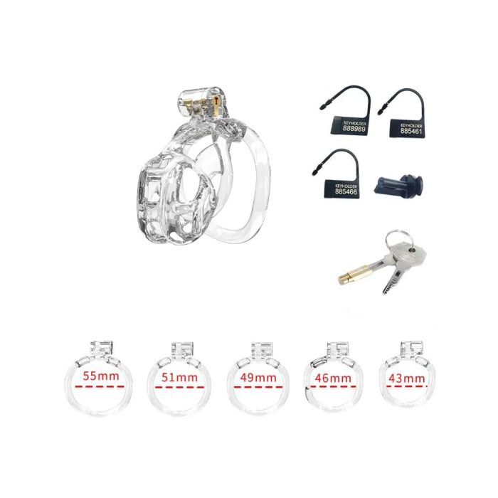 De set bevat vijf ringen in verschillende maten, variërend van 43 tot 55 mm, zodat gebruikers de ideale pasvorm kunnen vinden die aansluit bij hun persoonlijke voorkeuren en anatomie. Bovendien is de set uitgerust met een koperen inbouwslot voor extra veiligheid, evenals drie genummerde plastic hangsloten die na gebruik eenvoudig kunnen worden afgeknipt met een schaar. Dit biedt niet alleen een praktische oplossing, maar ook een zekere mate van discretie. Voor reizigers zijn er twee plastic schroeven inbegrepen als alternatief voor de koperen sloten, waardoor de set luchthavenvriendelijk is en voldoet aan de veiligheidsnormen, zodat gebruikers zich geen zorgen hoeven te maken tijdens hun reizen.