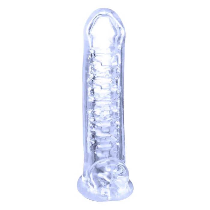 Maak je klaar om je intieme momenten naar een hoger niveau te tillen met de Penissleeve Ice Crystals van NMC! Deze innovatieve sleeve heeft een lengte van 18 cm en een inbrengbare lengte van 13,9 cm, wat zorgt voor een perfecte pasvorm en extra stimulatie. Het verlengstuk van 8,9 cm biedt niet alleen een indrukwekkende penisverlenging, maar de flexibele structuur past zich ook aan jouw lichaam aan, waardoor je optimaal comfort ervaart tijdens het gebruik.