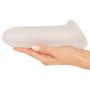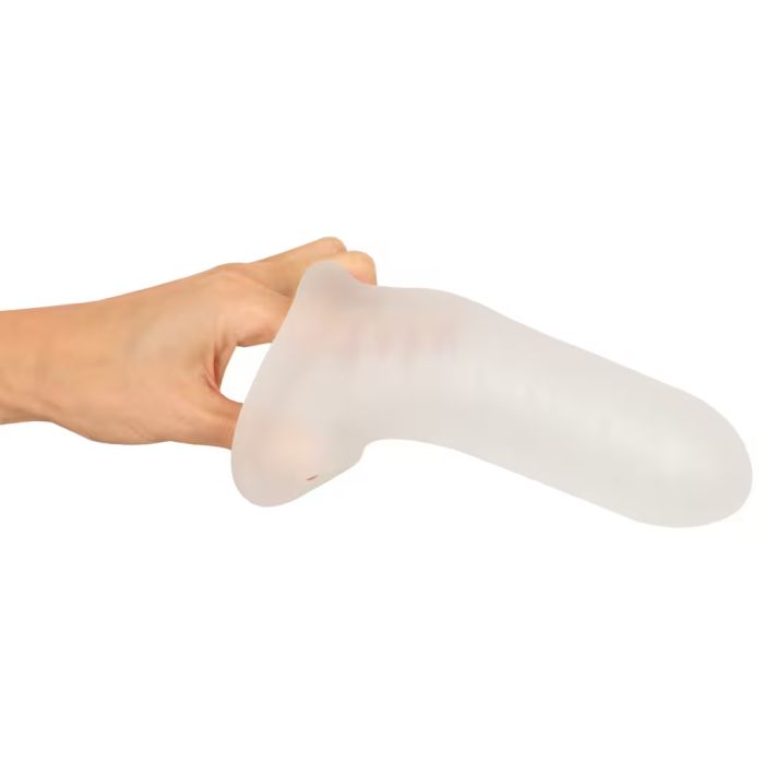 Deze slimme sleeve is speciaal ontworpen om je penis snel en eenvoudig te vergroten, met een indrukwekkende toename van maar liefst 1,3 cm in zowel dikte als lengte. Je zult het verschil direct voelen! De elastische, transparante sleeve glijdt moeiteloos over je penis en biedt een perfecte pasvorm dankzij de stimulerende groeven aan de binnenkant. Deze groeven zorgen voor een heerlijke wrijving en een anti-slip effect, zodat je je geen zorgen hoeft te maken over de sleeve tijdens de meest intense momenten van genot.