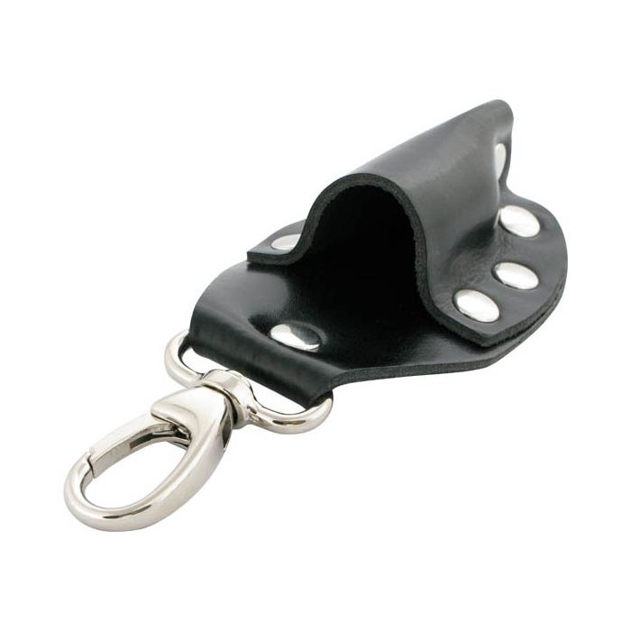 Gemaakt van echt leer en afgewerkt met stoere studs, klik je deze flesjeshouder gewoon aan je riemlussen van je broek.