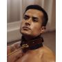 Deze handgemaakte halsband en riem van het merk Liebe Seele zijn vervaardigd van hoogwaardig rundleer in twee verschillende kleuren en texturen. De dubbele laag zorgt voor extra stevigheid en de voering van lamsleer zorgt voor extra comfort voor je sub. De halsband is verstelbaar tussen 36,5 en 45 cm en is voorzien van kenmerkende accenten in het goud van The Equestrian.