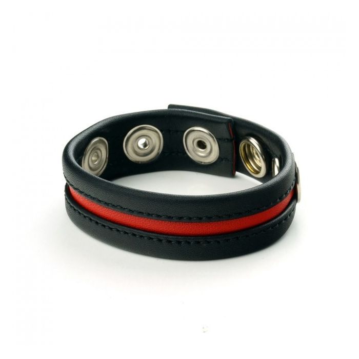 Leren Cockring 3-Snap - Zwart / Rood