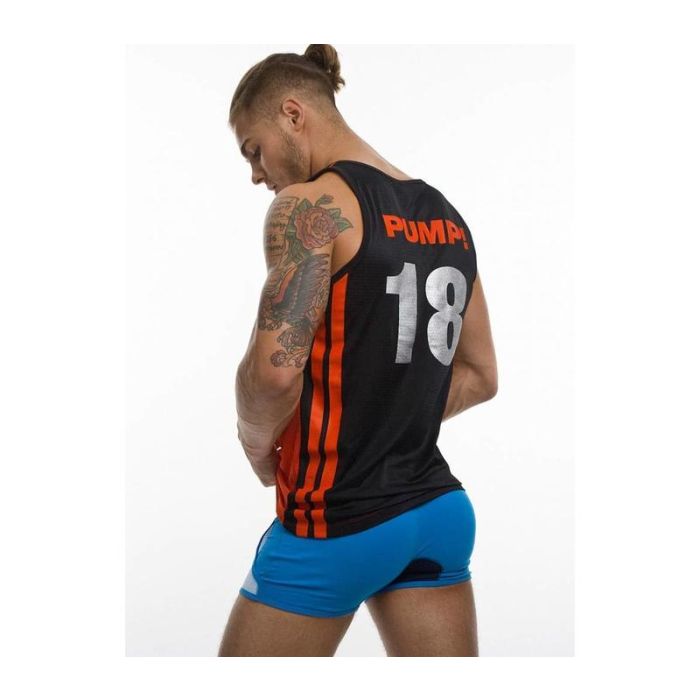 De voorkant van de Falcon Tank is rood en de achterkant is zwart en voorzien van een rood Pump logo en een zilverkleurig rugnummer. Aan de zijkanten zijn sportieve rode strepen aangebracht. Dit mouwloze shirt is ideaal om in te sporten, of voor een sportieve casual look.