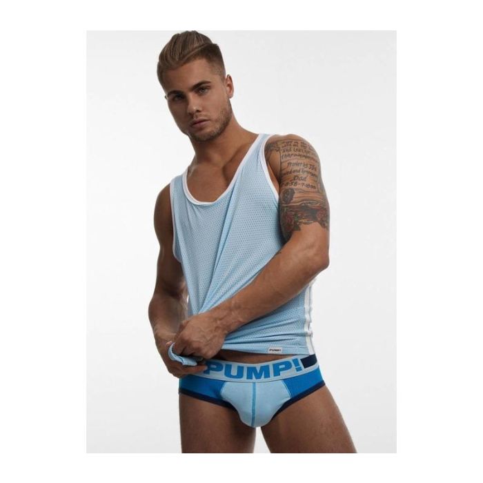 De baby blauwe Frost Tank 21 is een sportieve tanktop gemaakt van luchtig micro-mesh materiaal. Dit mouwloze shirt van Pump heeft een soepele pasvorm en sportieve details.