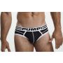 De Lux Brief heeft een comfortabel pouch gemaakt van zwart katoen en afgewerkt met witte zomen.