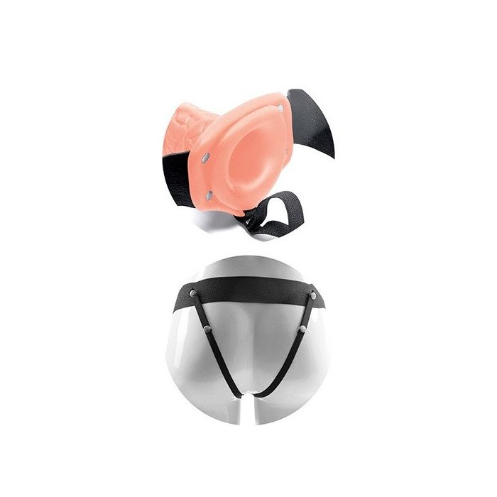 Ga voor deze vibrerende holle strap-on en geef je lover wat hij verdient. Schuif je penis in de holle dildo, laat je lover bukken en neem hem diep in zijn kontje. Stoot hem tot aan de realistische balzak naar binnen zodat hij de vibraties tot diep in zijn anus zal voelen. De realistische look met geaderde schacht en een mooi gevormde eikel en balzak zal heerlijk aanvoelen alsof je wordt genomen door een echte lul. De elastieken band zit strak om het lichaam zodat jij ook onbezorgd ruig tekeer kan gaan. De vibraties zijn te bedienen via de vaste afstandsbediening.
