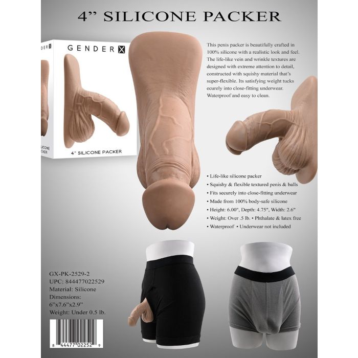 De Realistische Dildo Packer Medium van Gender X is vervaardigd uit 100% siliconen en biedt een realistische look en feel. De levensechte ader- en rimpeltexturen maken het geheel zo natuurlijk mogelijk, terwijl het zachte materiaal superflexibel is en comfortabel draagt. De Packer Medium past veilig en stevig in nauwsluitend ondergoed en voelt realistisch aan tijdens gebruik. De dildo is waterdicht en eenvoudig schoon te maken, wat zorgt voor een hygiënische en betrouwbare ervaring.