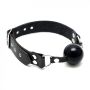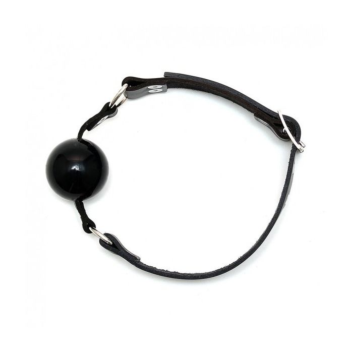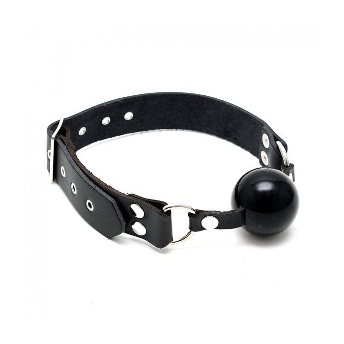 Geen plastic, maar riem in leer, en silicone bal. Voor de perfecte slaaf