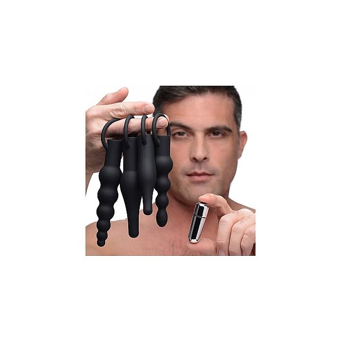 - Inbrengbaar: Geribbelde Plug S, 10.70 cm, L, 12.70 cm Taps toelopende plug S, 8.90 cm, L, 11.50 cm