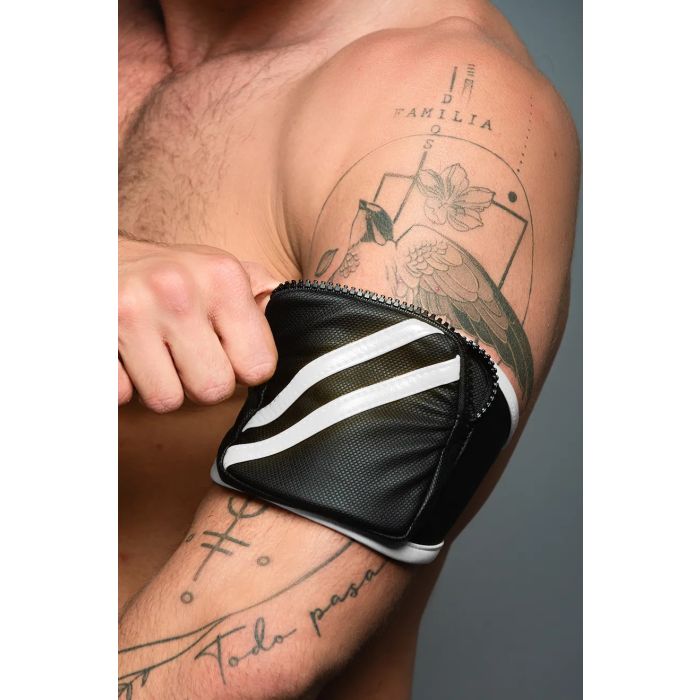 Het verstelbare klittenbandsysteem maakt het eenvoudig om het bandje aan te passen aan verschillende armomtrekken, waardoor het beschikbaar is in drie maten: S, M en L. Dit betekent dat iedereen, ongeacht lichaamsbouw, kan genieten van de voordelen van dit trendy accessoire. De gedurfde combinatie van zwart en wit geeft een krachtige uitstraling die perfect is voor zowel casual als formele gelegenheden. Of je nu een leren short of een jockstring draagt, dit bandje voegt een gedurfde en sexy touch toe aan je look die zeker de aandacht zal trekken.