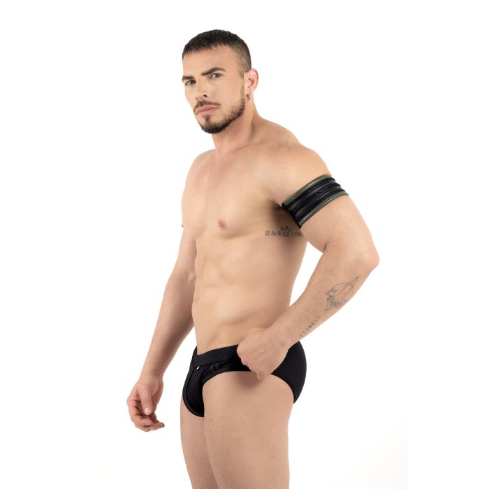 ROK Biker Two Stripes Biceps Band - Zwart/Groen