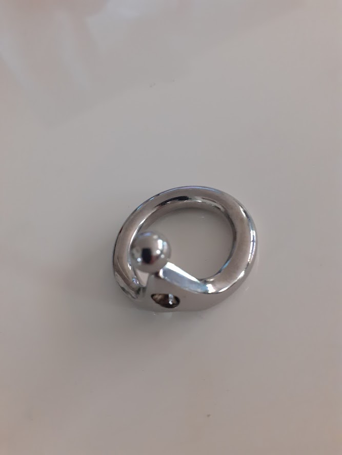 Prachtig juweeltje en past perfect over mijn eikel 0 klant(en) vonden dit nuttigPrachtig juweeltje met een perfecte pasvorm. Het mooie van deze ring met sperma-stopper is dat je de rond gebogen stopper eraf kan draaien, zodat je alleen de ring overhoudt. De stopper wat korter gemaakt en iets afgevijld en in het gat gestopt, zodat er een kroontje als het ware op komt. Prachtig gezicht als je hem draagt. Zelf heb ik een circumcisie ondergaan en deze is wel laag en strak gesneden. Hierdoor past het juweel perfect om mijn eikel met de V-vorm naar mijn top. Met de goede maatvoering (25 mm) zit hij als gegoten en kan ik hem overdag en de hele nacht dragen. Zie de foto’s.