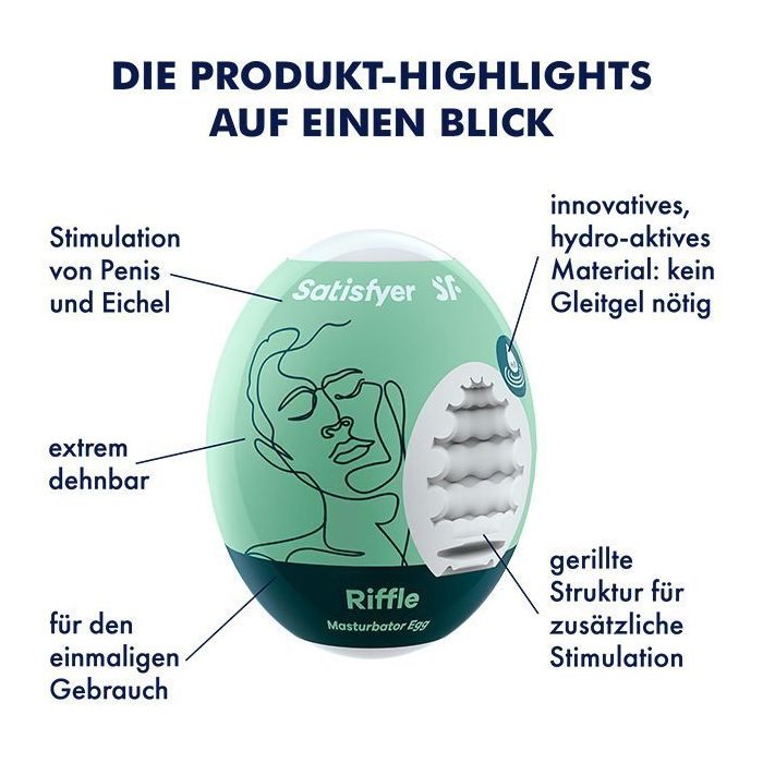 De Satisfyer Masturbator Egg - Riffle is perfect voor eenmalig gebruik, waardoor je altijd kunt genieten van een frisse en hygiënische ervaring. Het waterdichte ontwerp maakt het mogelijk om deze masturbator in de douche of het bad te gebruiken, wat je mogelijkheden voor plezier vergroot. Of je nu op zoek bent naar een spannende solo-sessie of een manier om je intieme momenten te verrijken, deze masturbator biedt de perfecte oplossing. Laat je verrassen door de unieke sensaties en ontdek een nieuwe wereld van genot met de Satisfyer Masturbator Egg - Riffle.