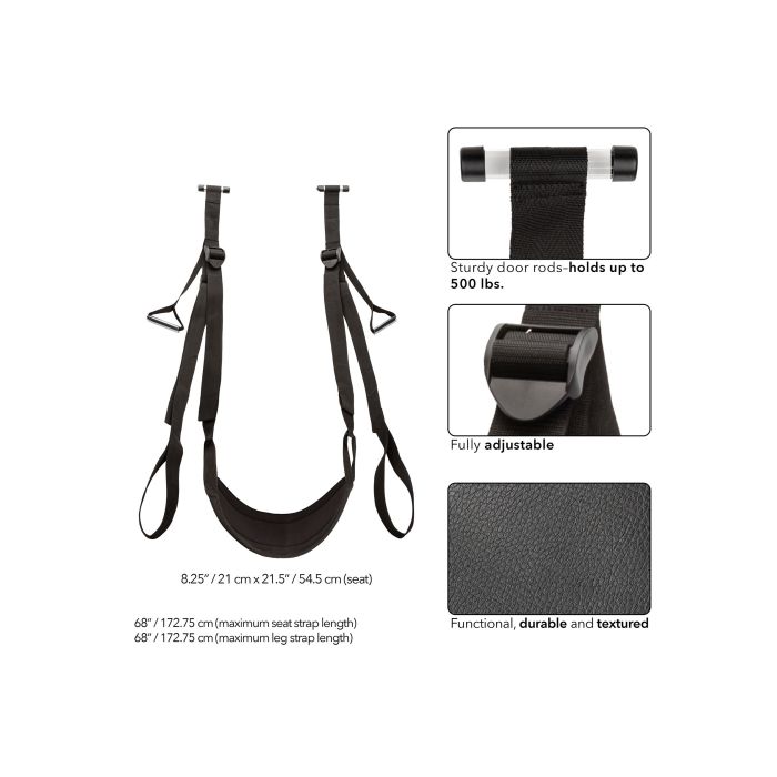 Transformeer je intieme momenten met de Nocturnal Collection Sex Swing, een premium accessoire dat speciaal is ontworpen om je plezier naar een hoger niveau te tillen. Deze seksschommel is vervaardigd met stevige deurstangen en een comfortabele, gewatteerde zitting, wat zorgt voor ongeëvenaarde ondersteuning en controle. Hierdoor kun je met gemak en comfort nieuwe posities verkennen, wat bijdraagt aan een verrijkte seksuele ervaring. De schommel is ontworpen voor gebruik over een deur en kan tot wel 226 kg dragen, wat stabiliteit garandeert tijdens je meest gepassioneerde ontmoetingen.