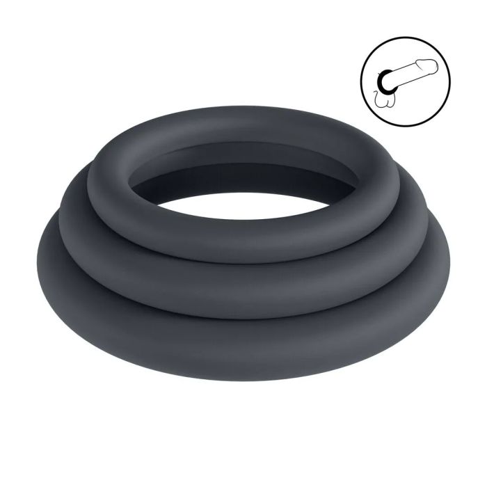 Silicone Cockring Set van 3 XS/S/M - Zwart