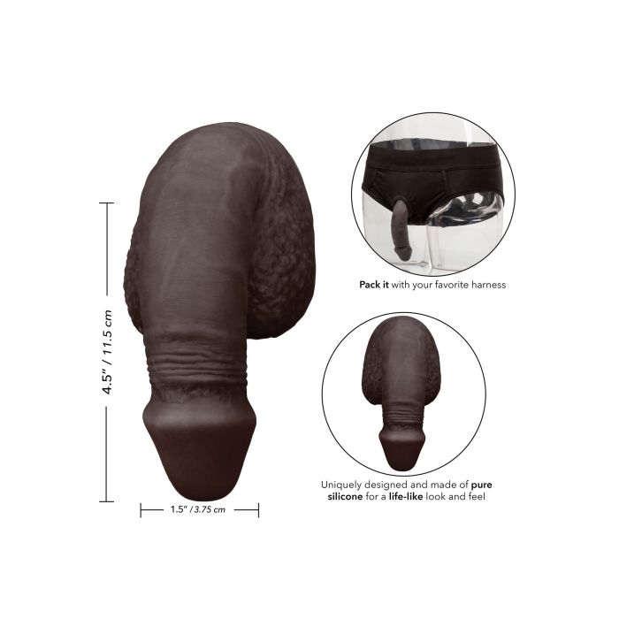 Op zoek naar een realistische penis voor in je Packer Gear slip? Deze zwarte siliconen Packing Penis van CalExotics is perfect voor jou. Ervaar het levensechte gevoel van deze penis en laat je fantasieën werkelijkheid worden. De Female to Male Gear penis is gemaakt van siliconen en heeft een lengte van 12,75 cm. Hij beschikt over een realistische eikel en balzak, voelt zeer flexibel en buigzaam aan en lijkt daardoor net echt.
