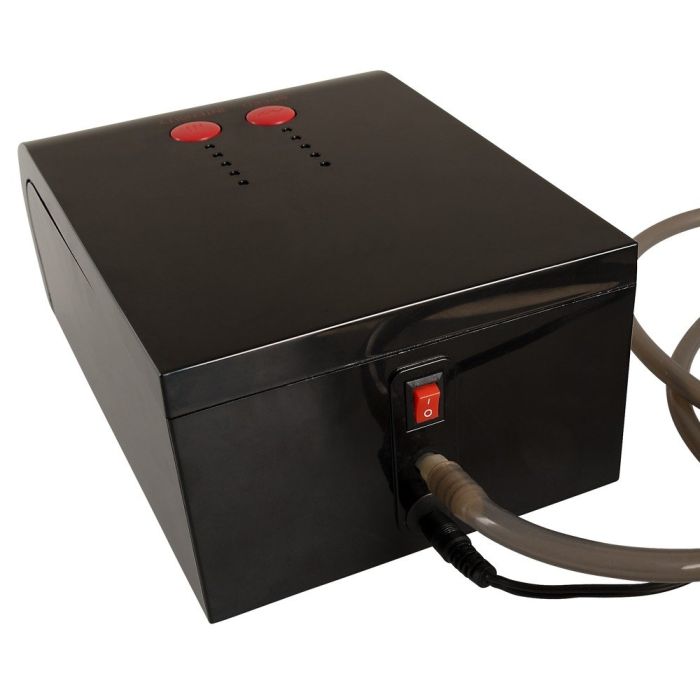 De krachtige elektromotor zit beschermd in de discreet zwarte behuizing met handige afmetingen: 20 cm lang, 13 cm breed en 8 cm hoog. Het netsnoer met stekker is 2 m lang en de slanglengte tot aan de hoes is 1,5 m. Al met al een aanzienlijke actieradius! Natuurlijk is de hoes wasbaar, evenals het filter dat de motor beschermt tegen nattigheid.