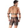 Maak je klaar voor een spannende ervaring met de zwarte set van Svenjoyment BONDAGE, die veel meer biedt dan alleen maar opwinding! Deze set bestaat uit een harnasbroek, een borstharnas en vier hand-/armboeien, allemaal ontworpen om je fantasieën tot leven te brengen. De broek is gemaakt van zacht, elastisch Powernet, wat zorgt voor een comfortabele pasvorm en een verleidelijke uitstraling. De langere pijpen geven een extra dimensie aan het geheel, terwijl het transparante materiaal met matte details je lichaam op een subtiele manier accentueert.