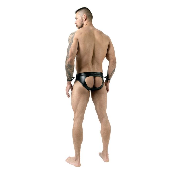 Met het dragen van de Svenjoyment Ouvert Jockstrap - Zwart voel jij je op en top mannelijk. De Svenjoyment Ouvert Jockstrap - Zwart is volledig bloot bij de billen en de Svenjoyment Ouvert Jockstrap - Zwart heeft een matte look die jouw beste kanten op spannende wijze benadrukt. Aan elke kant heeft de Svenjoyment Ouvert Jockstrap - Zwart een ring voor de twee meegeleverde handboeien met verstelbare klittenbandsluitingen.