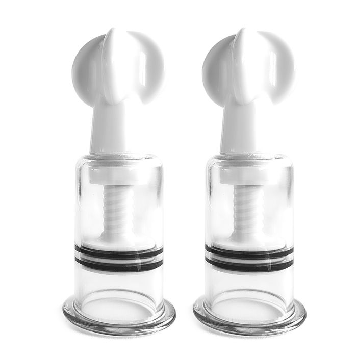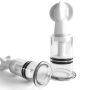 Deze Tepelzuigers Twister L Get Bigger Brutus, een set van twee zijn hoogwaardige tepelzuigers die speciaal zijn ontworpen om de grootte van je tepels te vergroten en de gevoeligheid te verhogen. Deze tepelzuigers zijn perfect voor iedereen die op zoek is naar een nieuwe dimensie in hun sensuele ervaringen. Met een gebruiksvriendelijke bediening kun je eenvoudig de vacuümdruk verhogen door aan de grote draaiknop van de cilinder te draaien, wat het ook gemakkelijk maakt voor beginners. De flens aan de onderkant zorgt voor een comfortabele en veilige afdichting, zodat je je volledig kunt concentreren op het genot. Vergeet niet om een beetje glijmiddel te gebruiken voor een optimale ervaring en om de vacuümdruk te behouden. Verkrijgbaar in twee maten, Klein voor normale tepels en Medium voor grotere of gepiercete tepels, zijn deze tepelzuigers een must-have voor elke BDSM-liefhebber die zijn of haar spel naar een hoger niveau wil tillen.