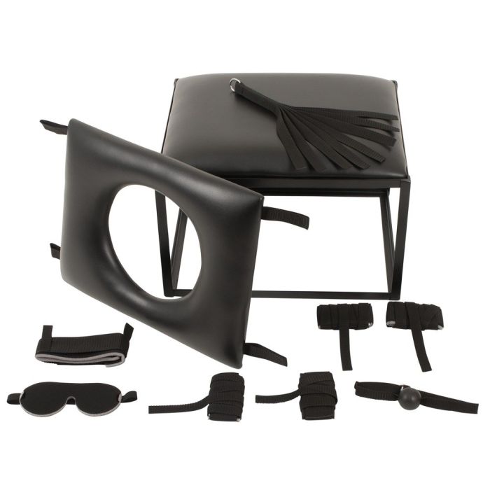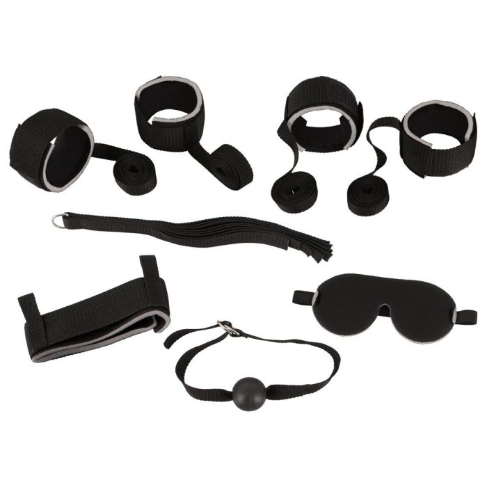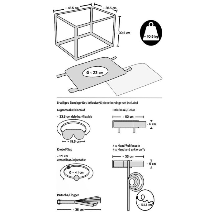 1 x oogmasker (33,5 cm x 18,5 cm, met hoofdstretchband)1 x ball gag (Ø 4,1 cm, hoofdband 59 cm lang, verstelbaar met 2 D-ringen)