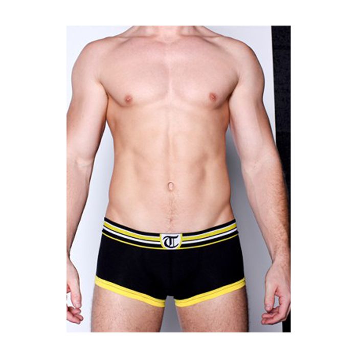 De lage tailleband is lekker vlot door het streepjes patroon en het Timoteo embleem.