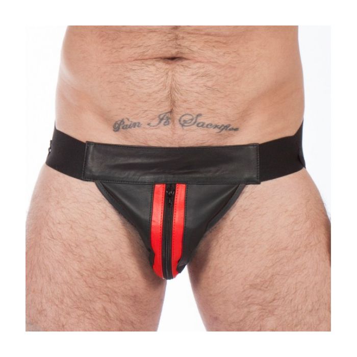MM Leren Jockstrap Met Rits - Zwart/Rood