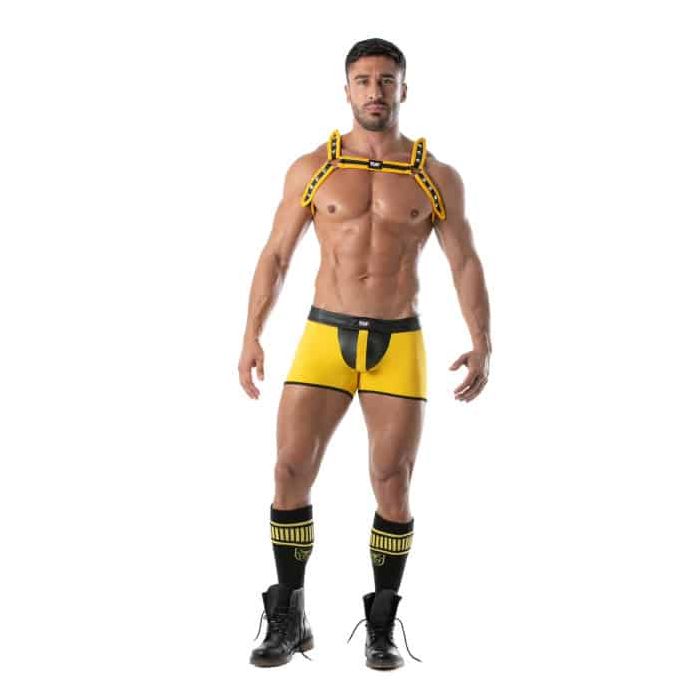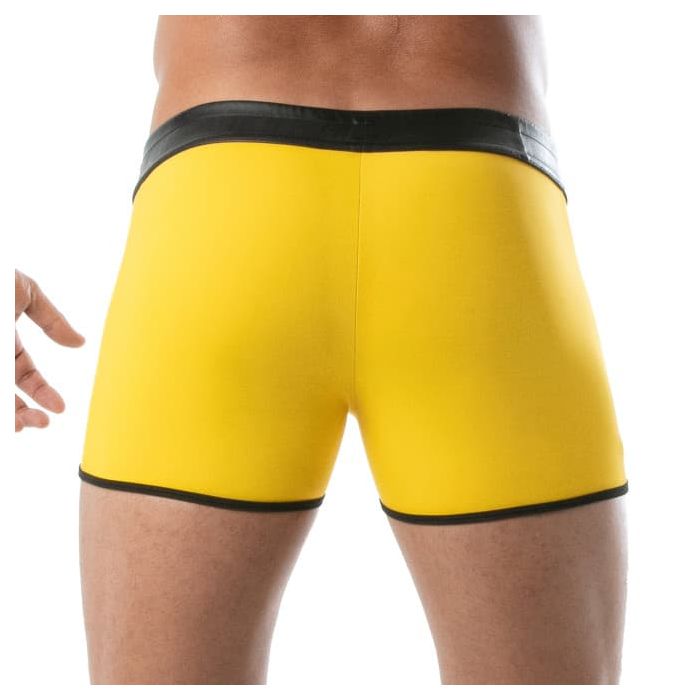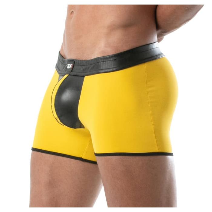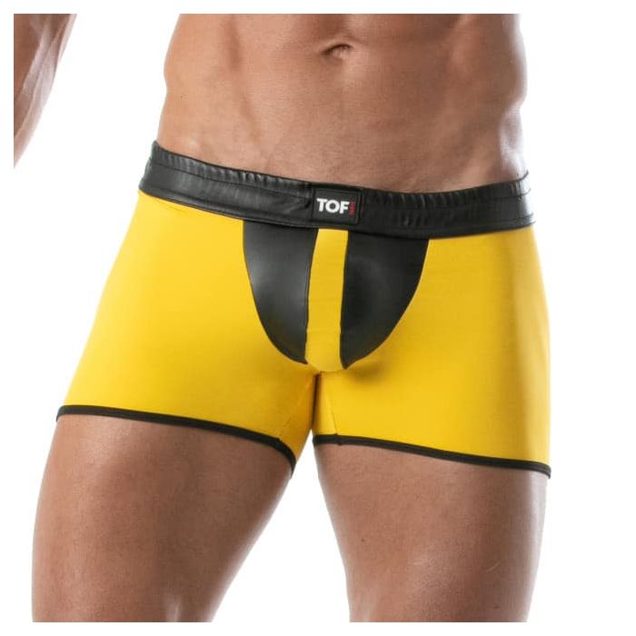 Verras je partner met het dragen van de TOF Paris Bad Boys Short - Geel van het trendy merk TOF Paris. De short is gemaakt van een imitatie leren stof en hierdoor garandeert deze short een goede pasvorm voor een geweldige look. Het unieke ontwerp van deze shorts laat jouw vormen mooi uitkomen en benadrukt jouw prominente mannelijkheid. Doordat het short bestaat uit verschillende contrasterende kleuren krijgt de short een pikante look. TOF Paris staat voor trendy en kwalitatief hoogstaande mannen kleding.