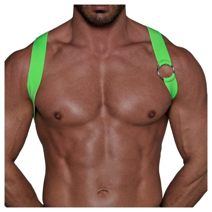 Laat jouw gespierde schouders nog breder lijken in het TOF Paris Party Boy Harnas - Neon Groen. Dit harnas is geheel gemaakt van elastische banden. Op de achterkant is het TOF embleem aangebracht. Het harnas heeft op de rug een X-model voor een comfortabele pasvorm en geaccentueerde schouders.