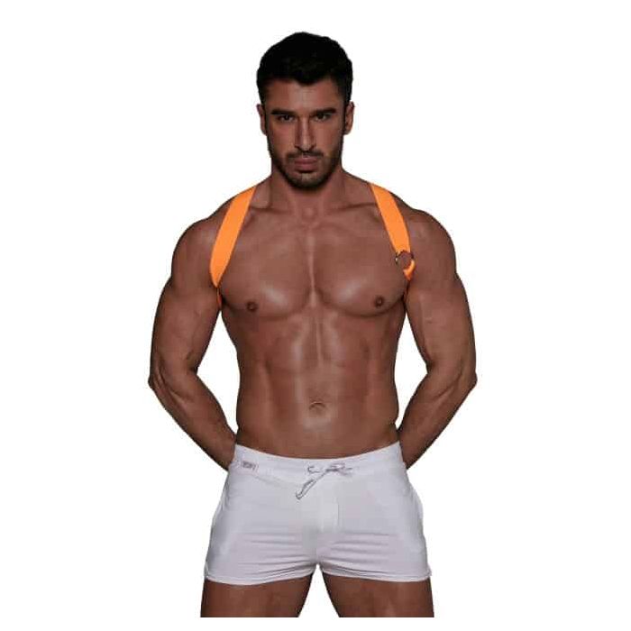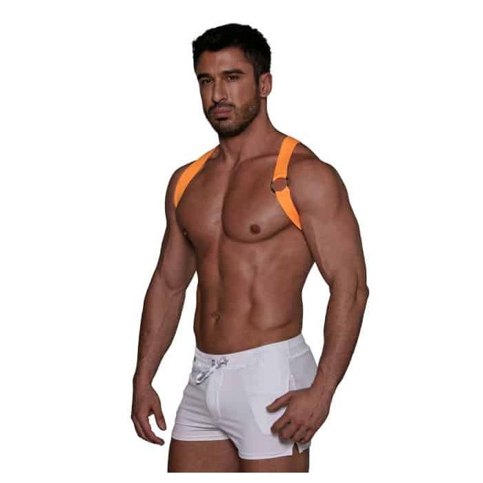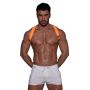 Het is tijd om het feestje compleet te maken en jouw gespierde schouders nog breder lijken in het TOF Paris Party Boy Harnas - Neon Oranje. Dit harnas is geheel gemaakt van elastische banden. Op de achterkant is het TOF embleem aangebracht. Het harnas heeft op de rug een X-model voor een comfortabele pasvorm en geaccentueerde schouders.