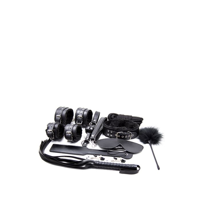 Op zoek naar het ultieme cadeau voor jezelf of een partner? De Dreamtoys Bondage Set biedt alles wat je nodig hebt voor een complete BDSM-ervaring. Met maar liefst 10 zorgvuldig geselecteerde items ontdek je comfort en luxe in één set. De pols- en enkelboeien en kraag zijn gevoerd met zacht imitatiebont voor een comfortabele en stijlvolle ervaring. De verstelbare metalen gespsluitingen zorgen voor een perfecte pasvorm.
