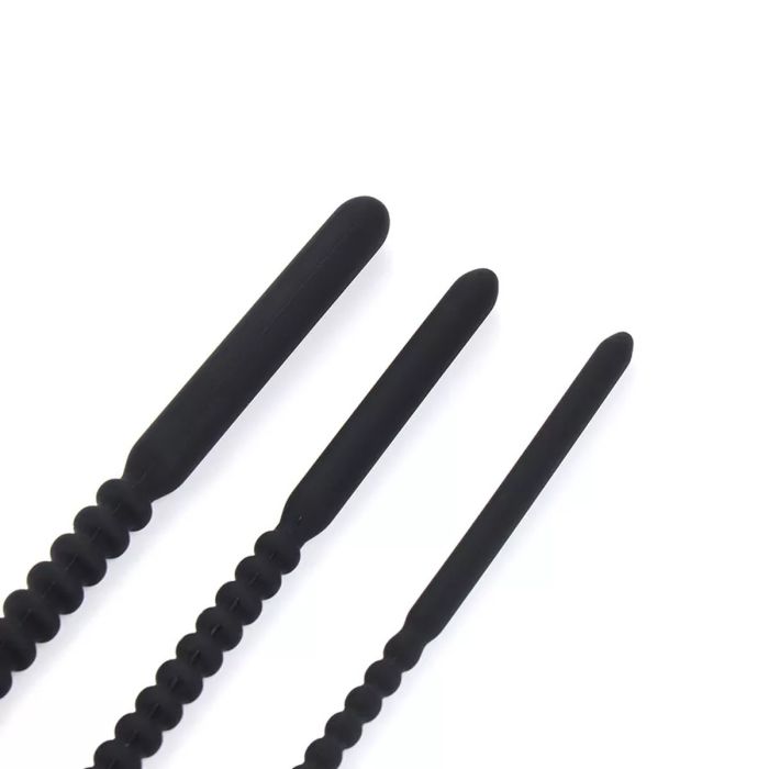 Deze siliconen urethrale sound set met schroefdraad van het merk Kiotos is perfect als je wilt oefenen met het strekken van je urethra. Deze set is speciaal ontworpen voor urethrale geluiden voor uw penis. Urethrageluid is voor de meeste mensen een vreemde maar onmiskenbaar bevredigende handeling, en daarom worden urethrageluiden steeds populairder dan ooit. Deze set bevat 3 siliconen urethrale geluiden met schroefdraad, beginnend met 6 mm, dan 8 mm en tenslotte met een diameter van 12 mm. Deze siliconengeluiden zijn gifvrij en zullen je doen glimlachen van genot. Ook is deze set gemakkelijk te reinigen.