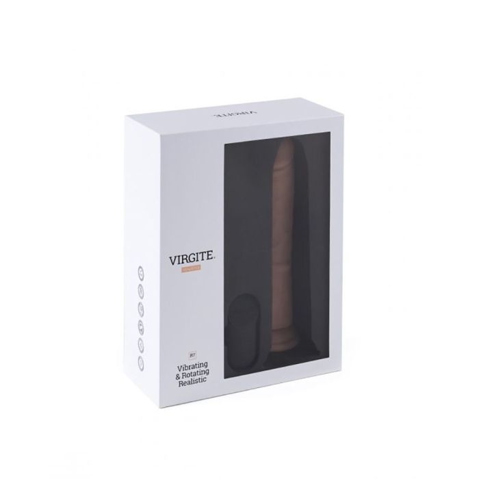 Het echte werk niet binnen handbereik? Ga dan voor iets wat daar zeer dicht bij in de buurt komt. Met deze vibrerende en roterende realistische dildo R7 van het merk Virgite geniet jij van een levensechte ervaring. De huidskleur siliconen dildo heeft een lengte van 21 cm en diameter van 4 cm. Breng hem in met voldoende glijmiddel op waterbasis en ontdek de 7 vibrerende en roterende standen en 4 verschillende snelheden. Deze zijn eenvoudig te bedienen met de bijgeleverde draadloze afstandsbediening die een bereik tot wel 10 meter heeft. Plaats de krachtige zuignap op een vlakke ondergrond en laat je meevoeren op het ritme van jouw verlangen. Je kunt de afstandsbediening ook aan je partner geven en je laten verrassen.
