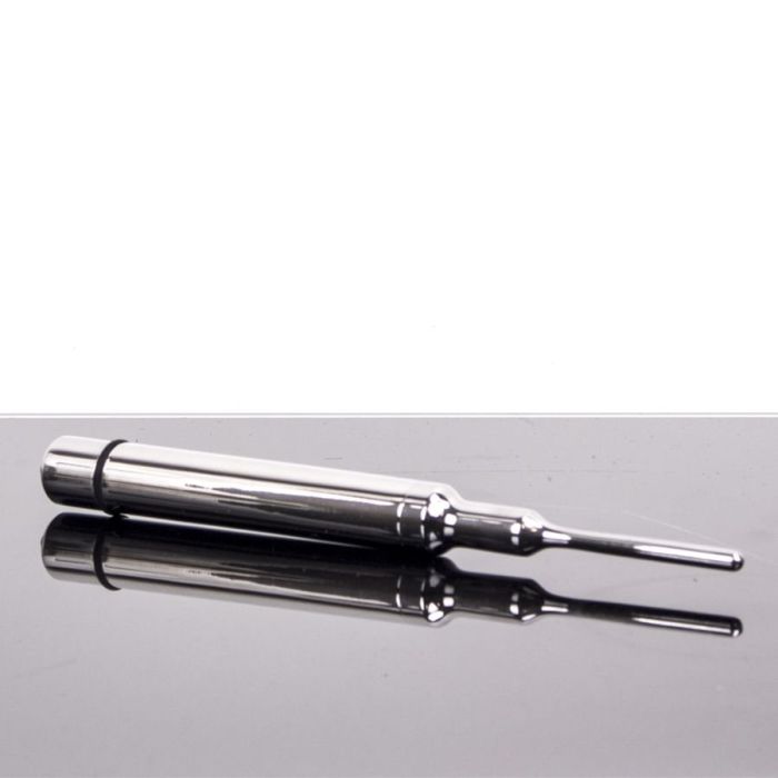 Deze vibrerende Sound maat small van Kiotos Steel is een heerlijk speeltje voor BDSM gevorderden. De dilator is gemaakt van sterk roestvrij staal en kan gedeeltelijk in de plasbuis worden ingebracht. De vibrerende sound heeft een totale lengte van 14 cm en een diameter 0,30 cm. Het inbrengbare gedeelte van deze toy is 4cm. Gebruik een beetje glijmiddel op waterbasis en breng het smalle gedeelte in. De vibraties zullen voor ongekende sensaties zorgen. De vibraties zijn makkelijk bedienbaar met de drukknop aan het uiteinde van de sound en door de verdikking heb je ook een goede grip. De Kiotos Steel vibrerende sound wordt geleverd met 1 x AAA batterij.