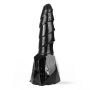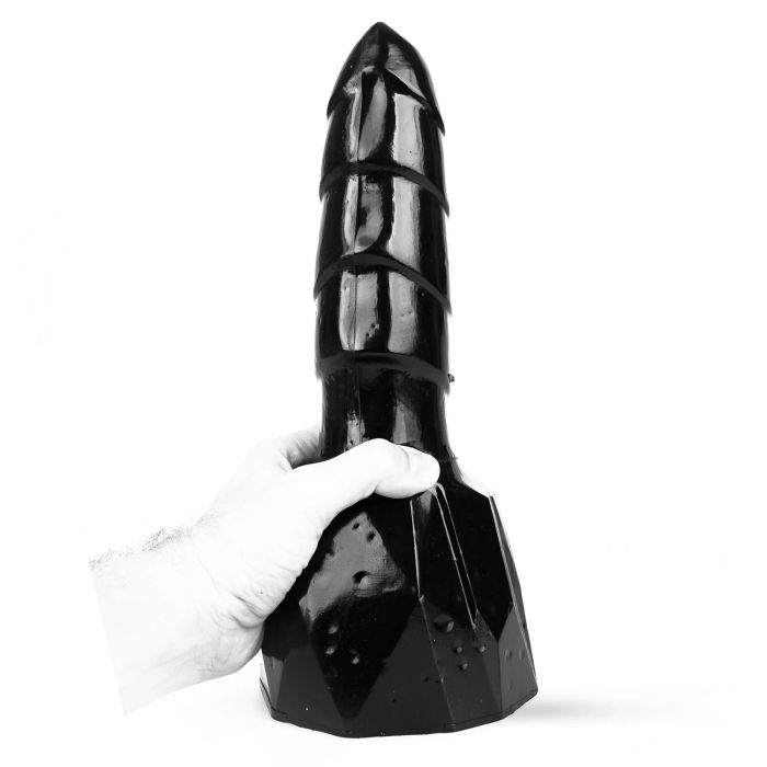 De ribbels over de schacht zorgen voor merkbare stimulatie bij iedere beweging. Of je nu langzaam opbouwt of het tempo wat opvoert, je voelt het verschil. Dankzij de brede vlakke basis blijft hij stabiel op zijn plek en is hij ook geschikt voor gebruik met een harnas. De zwarte uitvoering geeft hem een krachtige, stoere uitstraling die perfect past bij zijn formaat.