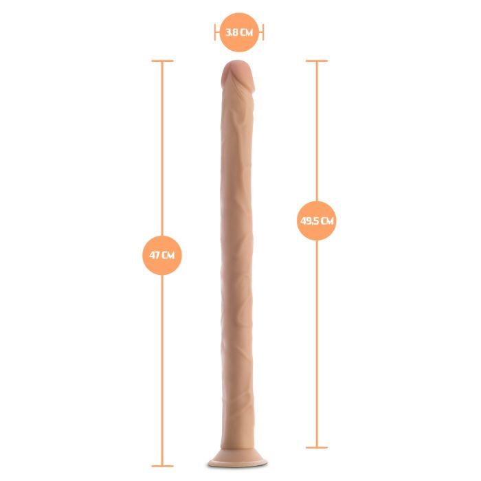 Deze bijzonder lange dildo is zeer geschikt voor extra diepe pentratie. Met zijn adembenemende lengte van bijna 50 cm is deze dildo een absolute aanrader voor de ervaren anal players. De dildo is zeer realistisch gevormd en is voorzien van een sterke zuignap voor handsfree fun. Gemaakt van buigzaam PVC.