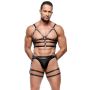 Het ZADO Leren Harnasset - Zwart is een uitgebreid harnas dat perfect is voor liefhebbers van BDSM en bondage. Dit harnas is gemaakt van hoogwaardige zwarte leren banden, die zorgen voor een stoere en verleidelijke uitstraling. De zilverkleurige metalen details voegen een vleugje elegantie toe aan het geheel. Dit harnas bestaat uit een borst- en heupharnas, die beide verstelbaar zijn op verschillende manieren. Met behulp van de gespsluitingen kun je het harnas eenvoudig aanpassen aan jouw lichaam, waardoor je altijd de perfecte pasvorm kunt creëren. De stevig vergrendelde dijbeenbanden zorgen voor extra veiligheid en comfort tijdens het dragen. Het ZADO Leren Harnasset - Zwart biedt niet alleen een opwindende look, maar ook een ongeëvenaard draagcomfort. Het harnas is ontworpen met oog voor detail en vakmanschap, waardoor het duurzaam en betrouwbaar is. De verstelbaarheid van het harnas maakt het geschikt voor verschillende lichaamstypes en maten, waardoor iedereen van dit harnas kan genieten. Of je nu een beginner bent in de wereld van BDSM of een ervaren liefhebber, dit harnas zal zeker aan al je verwachtingen voldoen. Het biedt niet alleen een gevoel van macht en controle, maar ook een gevoel van comfort en veiligheid. Durf jezelf te verkennen en je grenzen te verleggen met het ZADO Leren Harnasset - Zwart.